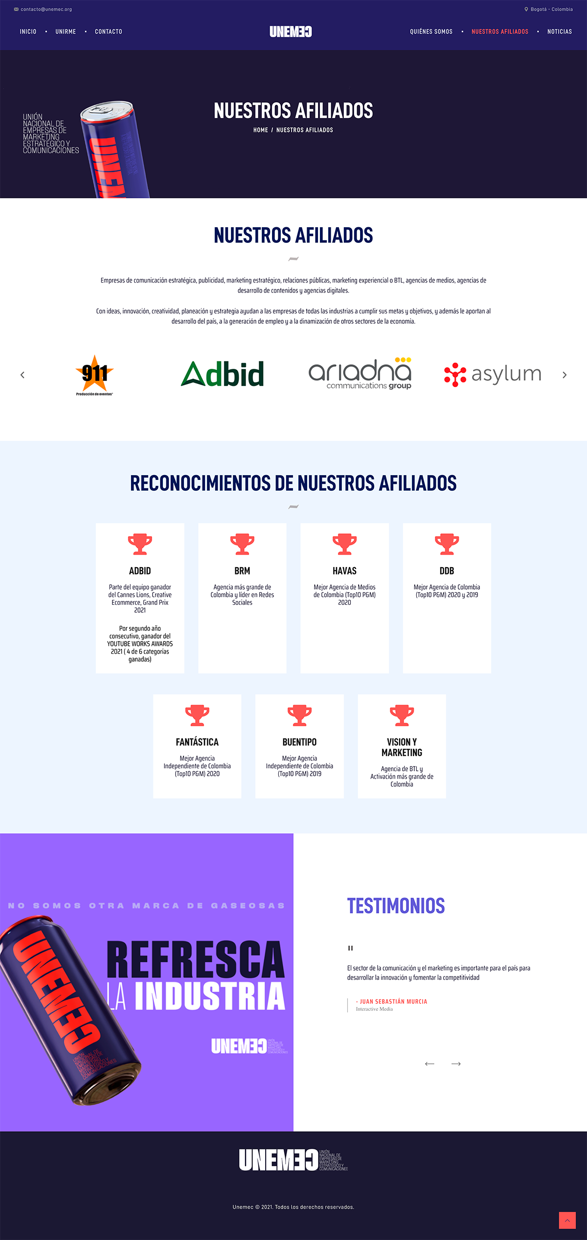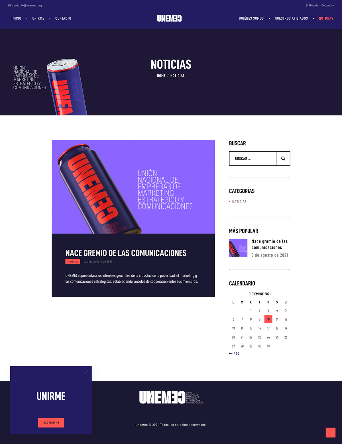 Se diseño y desarrollo el sitio web Responsive para Unemec, Desarrollado bajo una plataforma CMS – administrador de contenidos.