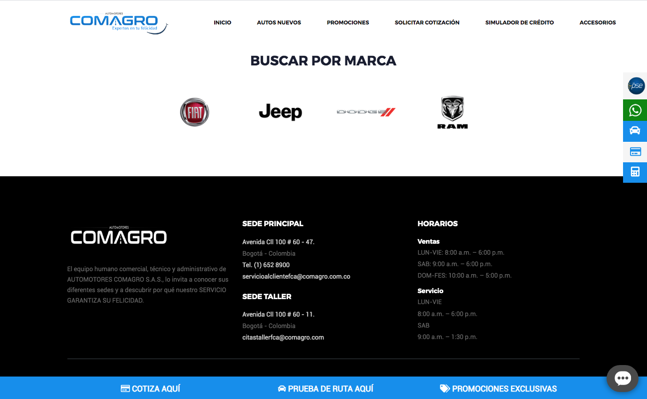 Se diseño y desarrollo el sitio web Responsive para Automotores Comagro, bajo una plataforma CMS – administrador de contenidos.