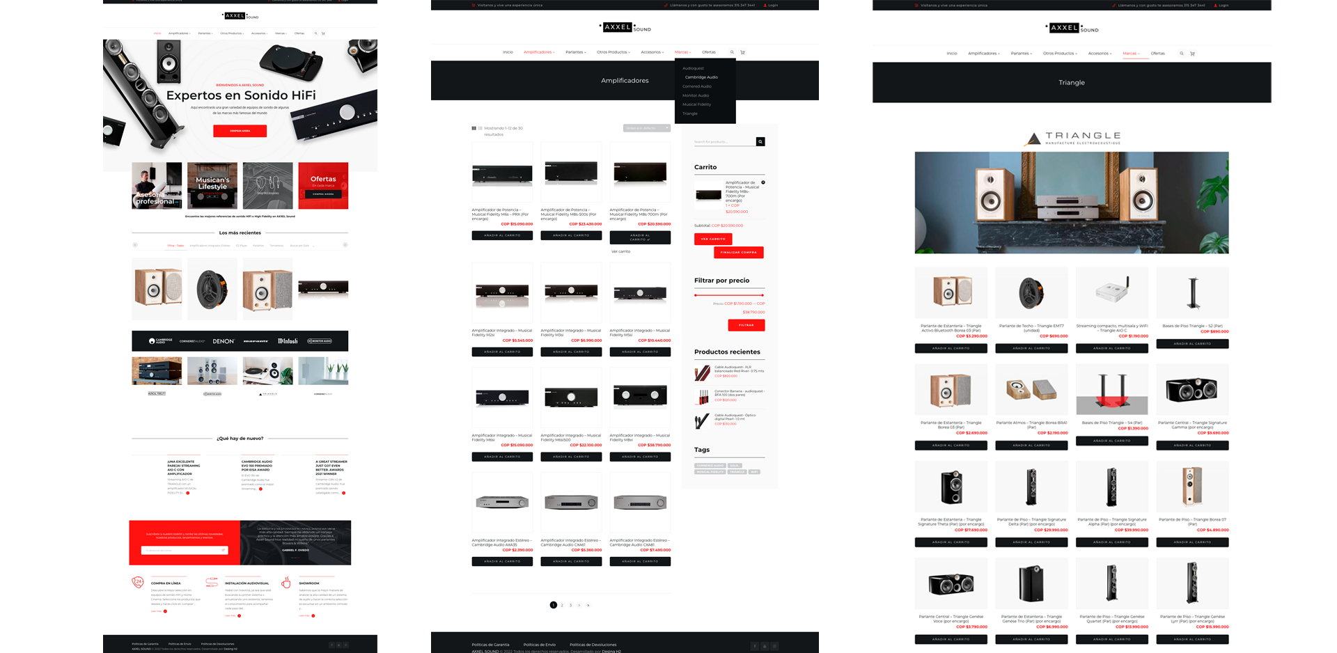 Se diseño y desarrollo el sitio web Responsive para la tienda de sonido HIFI AXXEL Sound, Desarrollado bajo una plataforma CMS – administrador de contenidos.