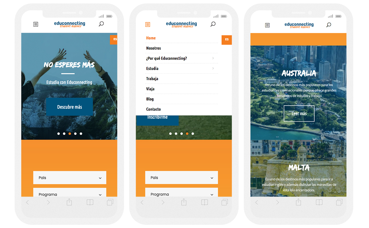 Se diseño y desarrollo el sitio web Responsive Multi lenguaje para la Agencia de Estudiantes Educonnecting, bajo una plataforma CMS – administrador de contenidos.