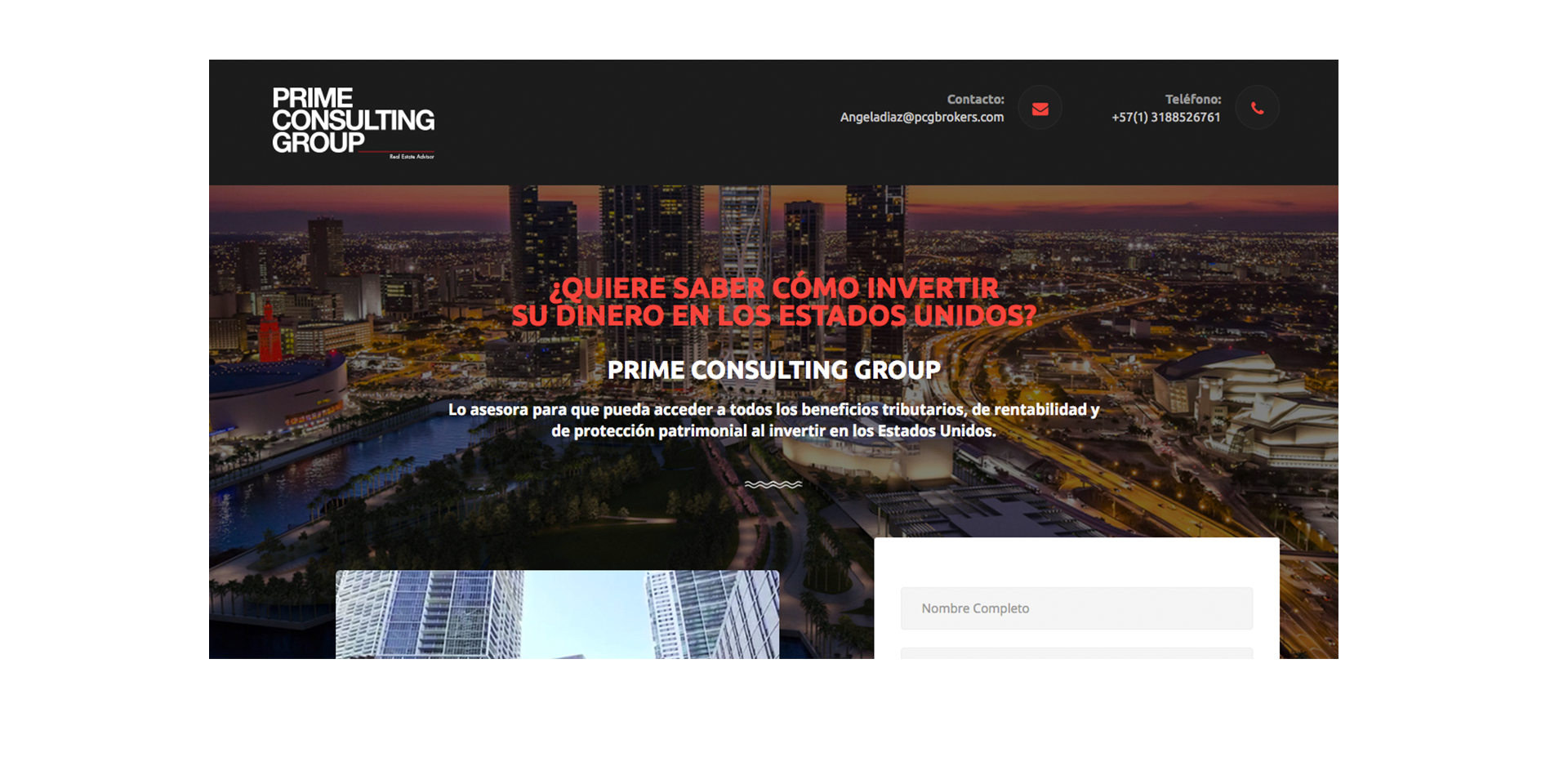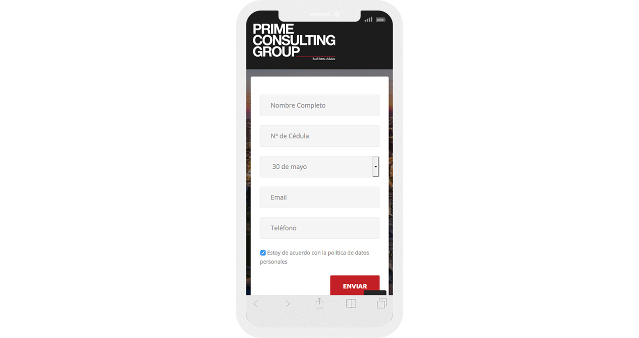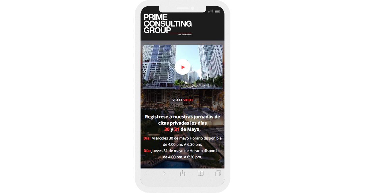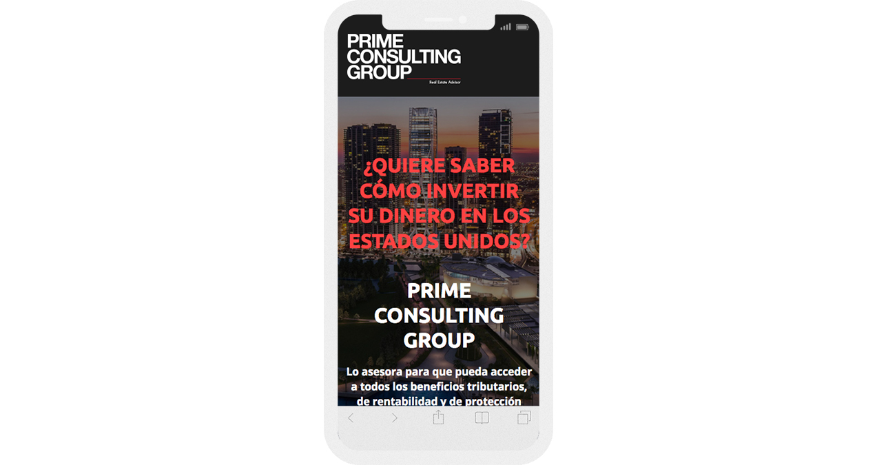 Diseño y desarrollo de landings page responsive para promocionar los diferentes servicios de Prime Consulting Group .